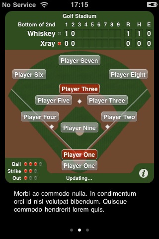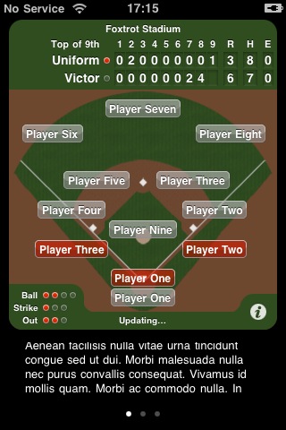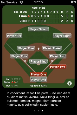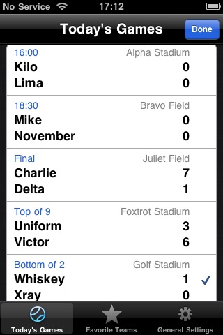 This app displayed line scores and field positions for all in-progress Major League Baseball games in a simple card-based user interface. Any game scheduled for the current day could be viewed. Games played by users' favorite teams were automatically shown.