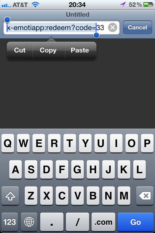 The app supports a custom URL scheme for installing alternate emoticon sets during testing. Pasting the URL into the browser launches Emoti which begins the download immediately. A different URL can be used to switch back to the latest release emoticon set.