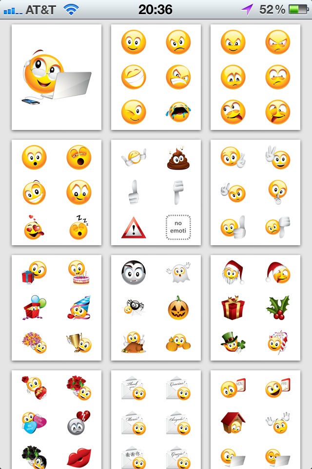 A few unique single-user emoticons were created as perks for employees, testers, friends, and family. Like the test sets, these are installed by pasting a URL into a browser, which launches the app to complete the installation. Once installed, the unique emoticons are displayed on a full page.
