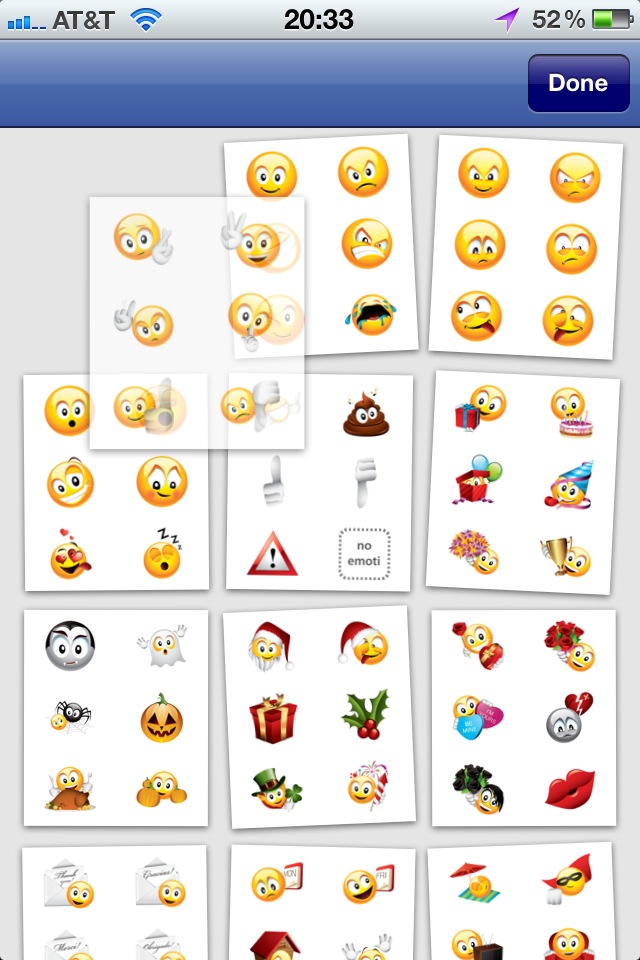 Emoticons and pages can be sorted using an interface modeled on the familiar jiggling drag-and-drop interface used to sort apps on the iOS home screen.