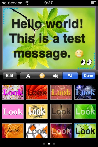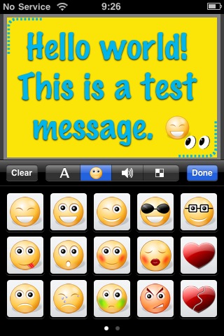 Emoticons are positioned in real-time and text is automatically resized to fit the available space so the message always looks good.